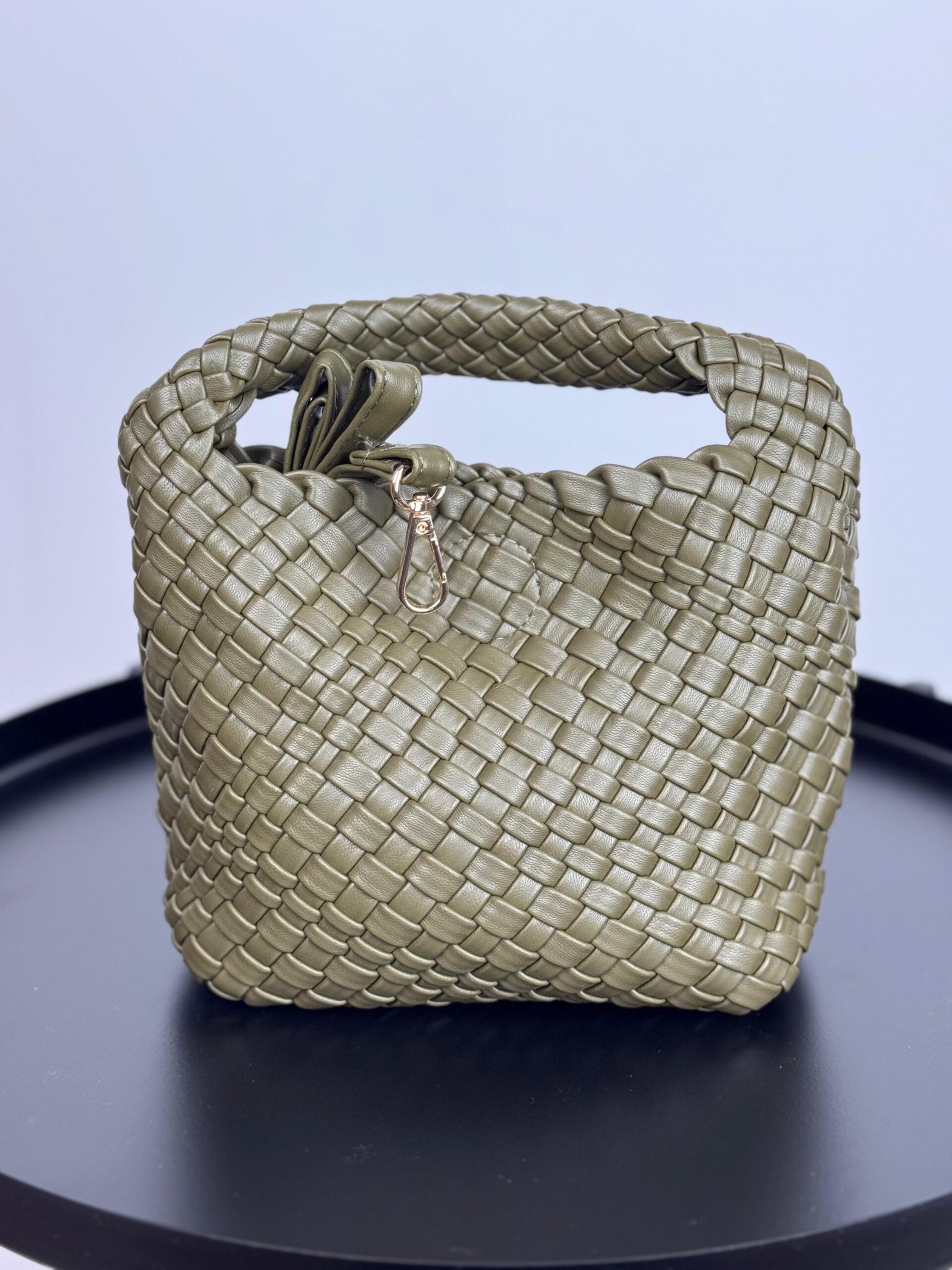 Borsetta piccola in simil pelle a “Cestino”. Con tracolla regolabile. Minimal e pratica, ideale per portare con sé l’essenziale.