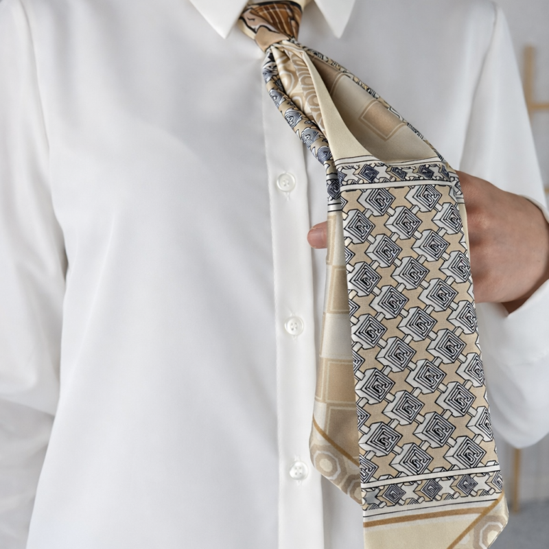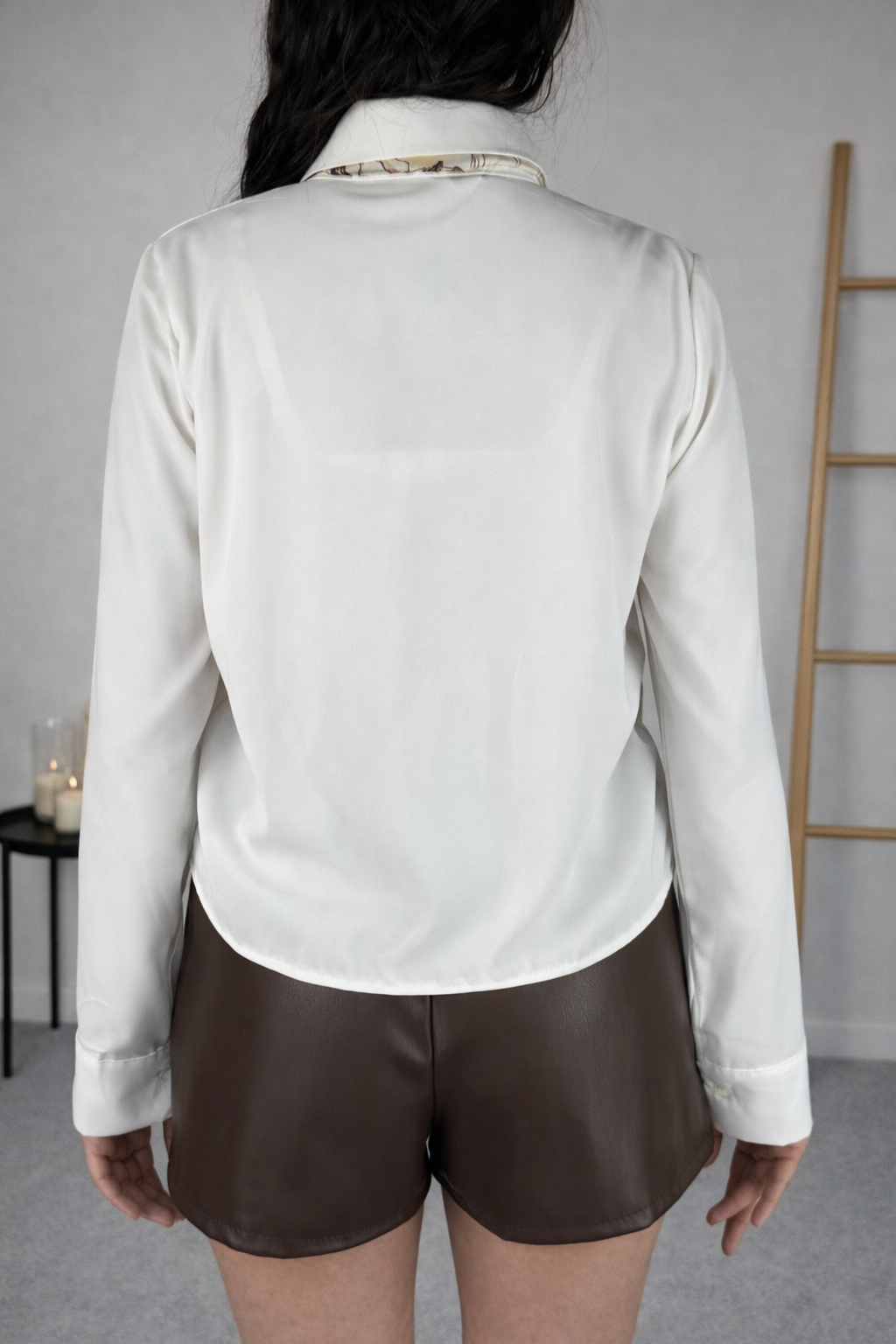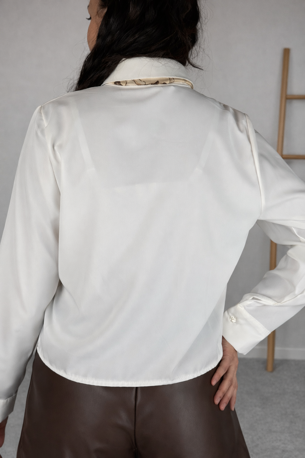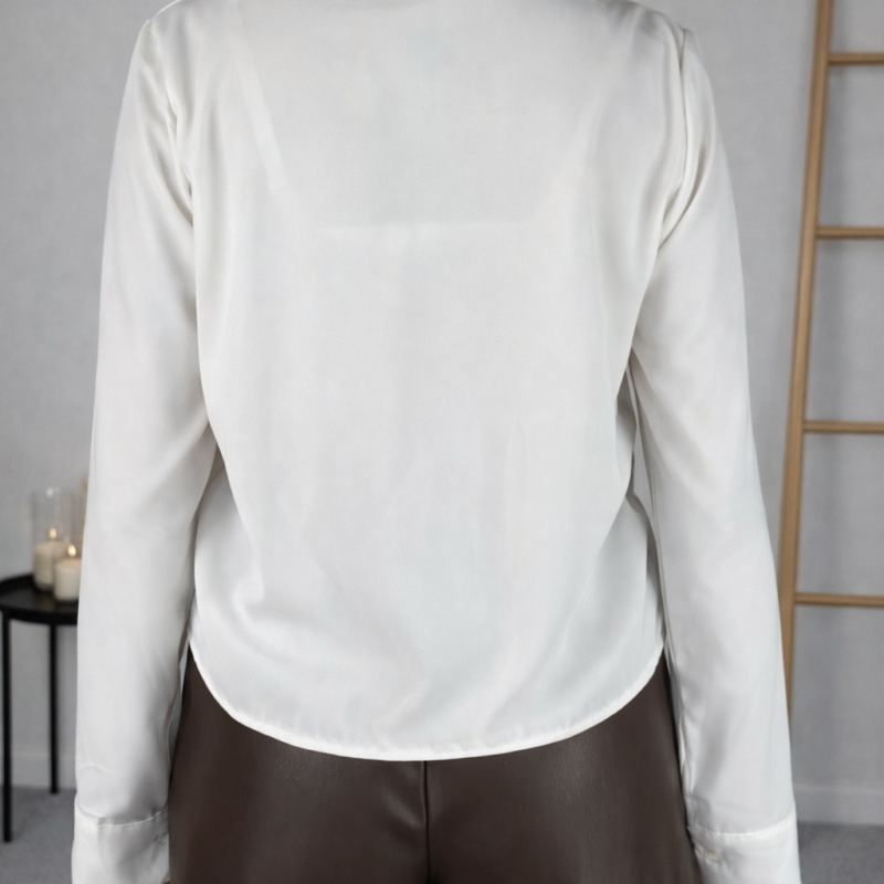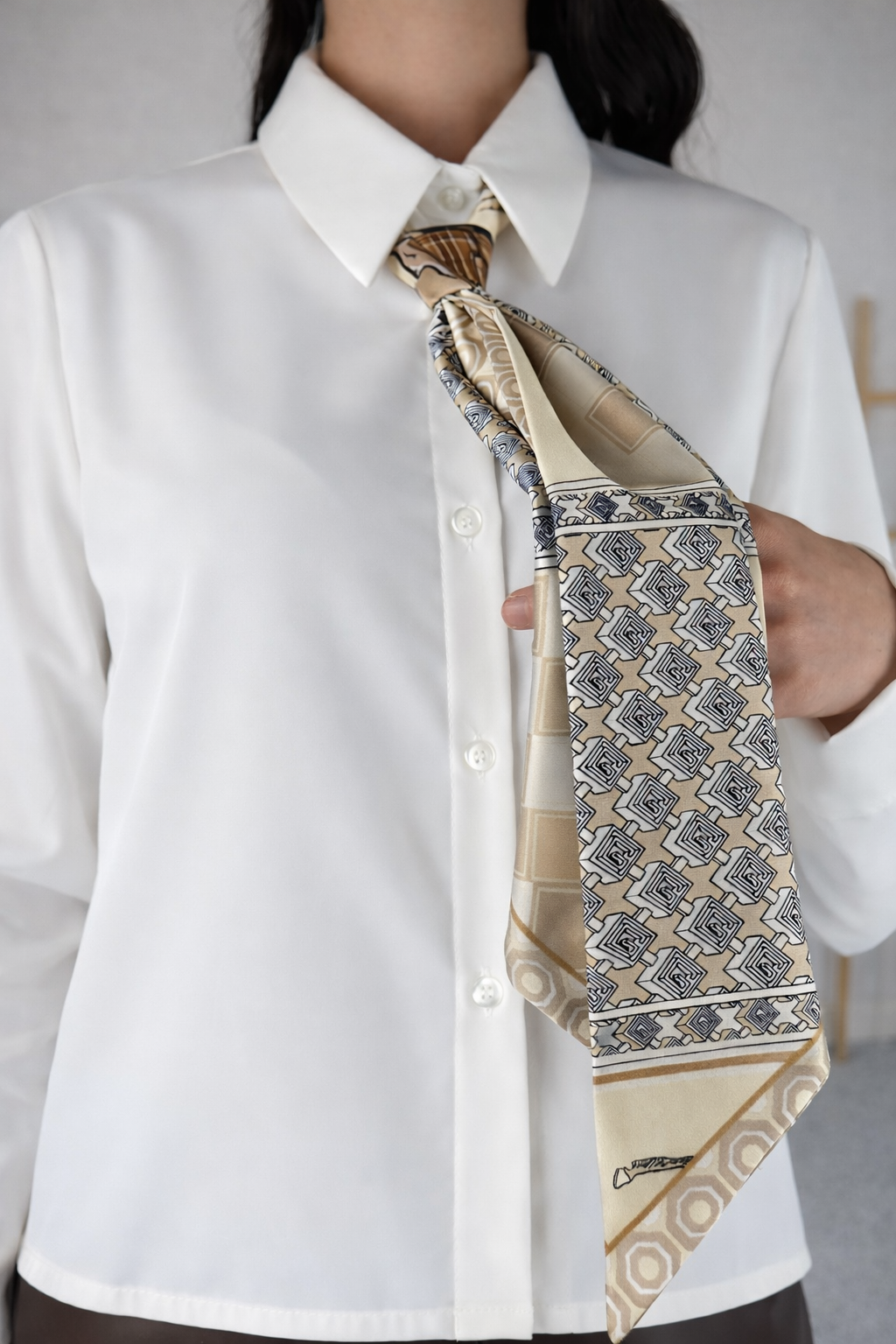 Camicia bianca leggera con cravatta. Si può abbinare benissimo sia ad un look professionale che ad un look sbarazzino!