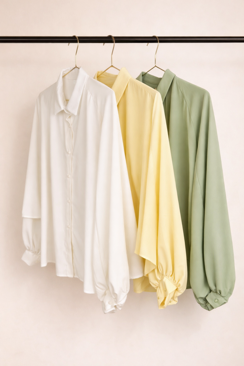 Camicia ampia e leggera con bottoncini luminosi.